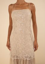 Vestido Morena Rosa Solto Decote Reto Com Alça Longo Bege