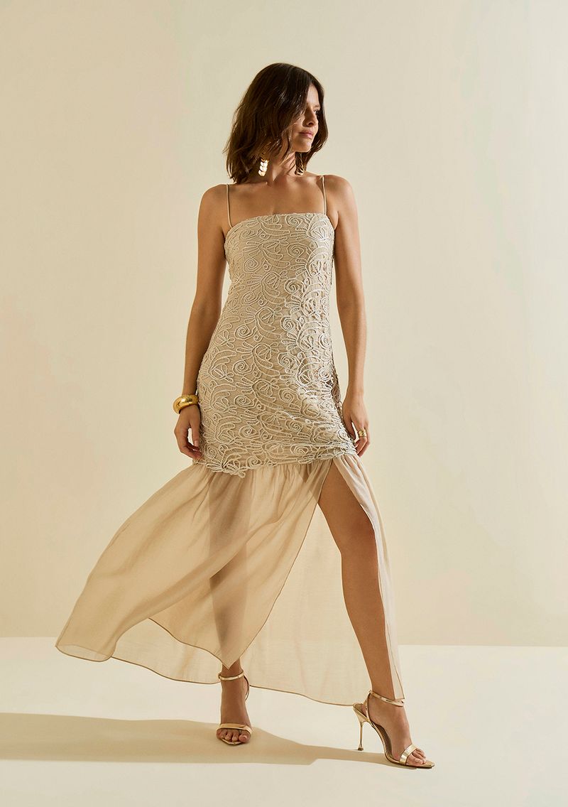 FemininoRoupasVestidosVestido Morena Rosa Solto Decote Reto Com Alça Longo Bege