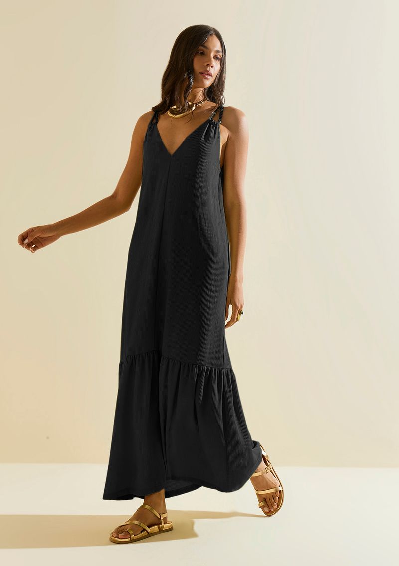 FemininoRoupasVestidosVestido Morena Rosa Solto Decote V Com Alça Longo Preto