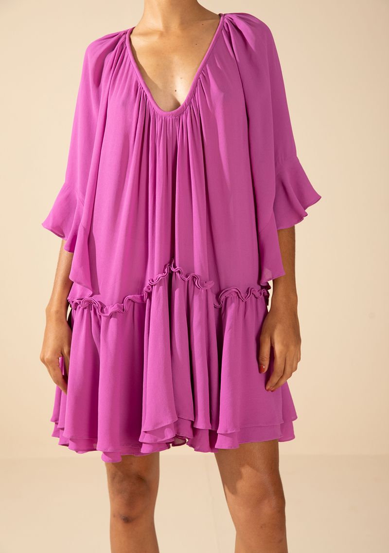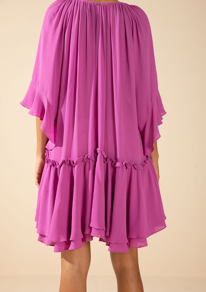 FemininoRoupasVestidosVestido Morena Rosa Solto Decote V Manga 7 Oitavos Curto Roxo