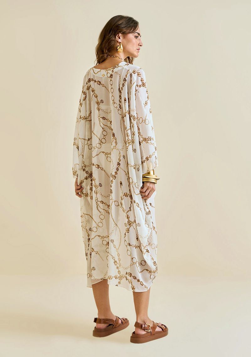 Vestido Morena Rosa Solto Decote V Manga 7 Oitavos Longo Off White