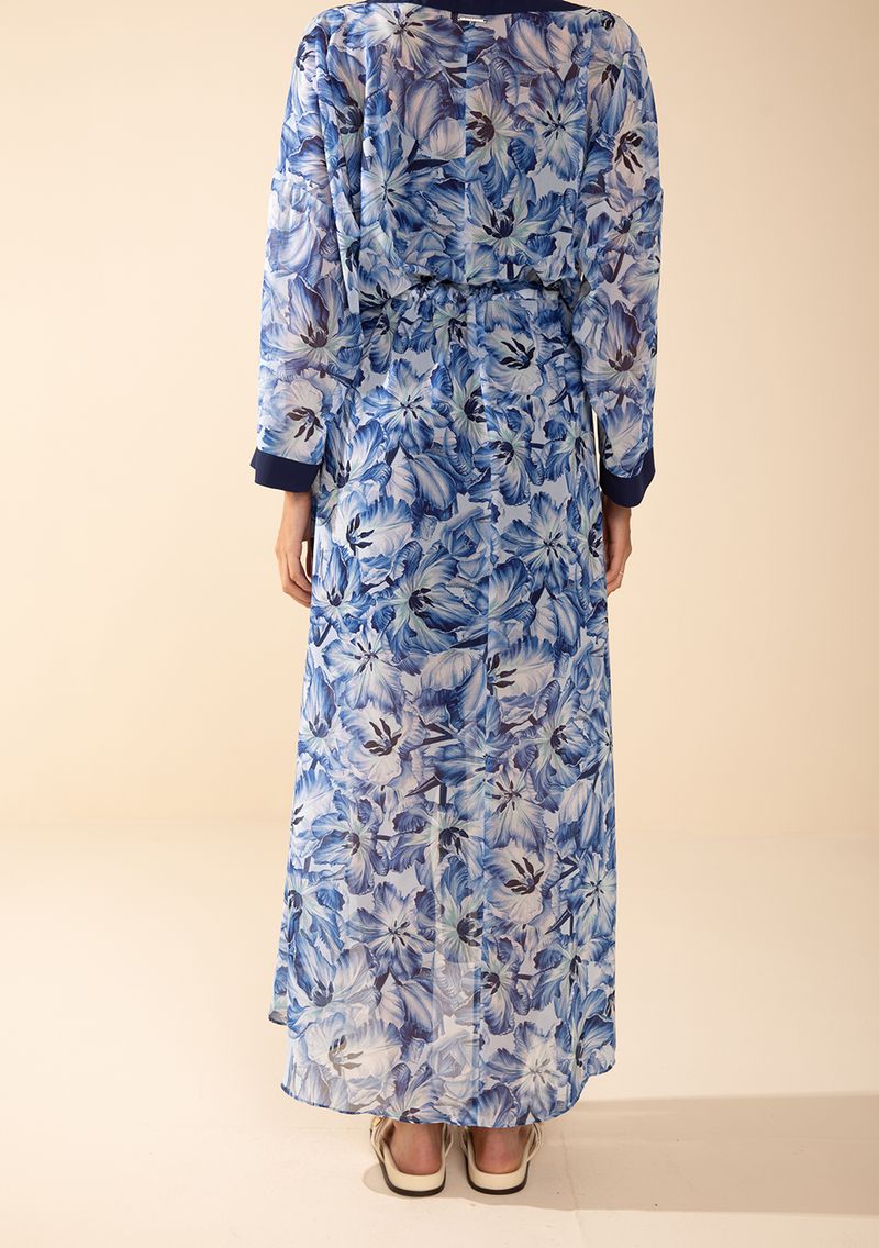 FemininoRoupasVestidosVestido Morena Rosa Solto Decote V Manga 7 Oitavos Midi Azul