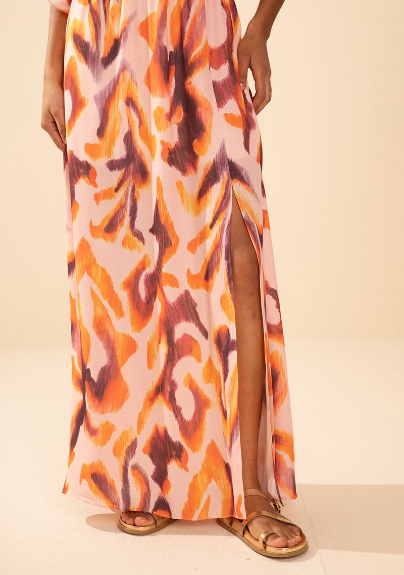 FemininoRoupasVestidosVestido Morena Rosa Solto Decote V Manga Curta Midi Rosa