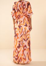 Vestido Morena Rosa Solto Decote V Manga Curta Midi Rosa