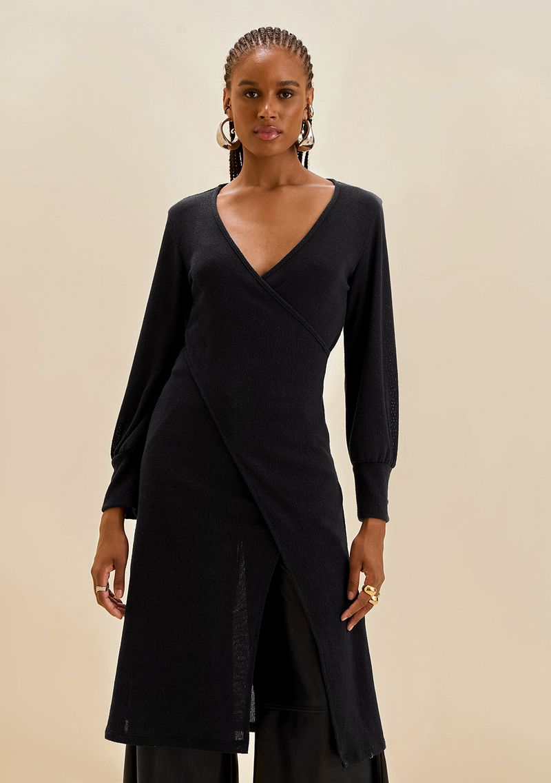 FemininoRoupasVestidosVestido Morena Rosa Solto Decote V Manga Longa Longo Preto