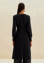 Vestido Morena Rosa Solto Decote V Manga Longa Longo Preto
