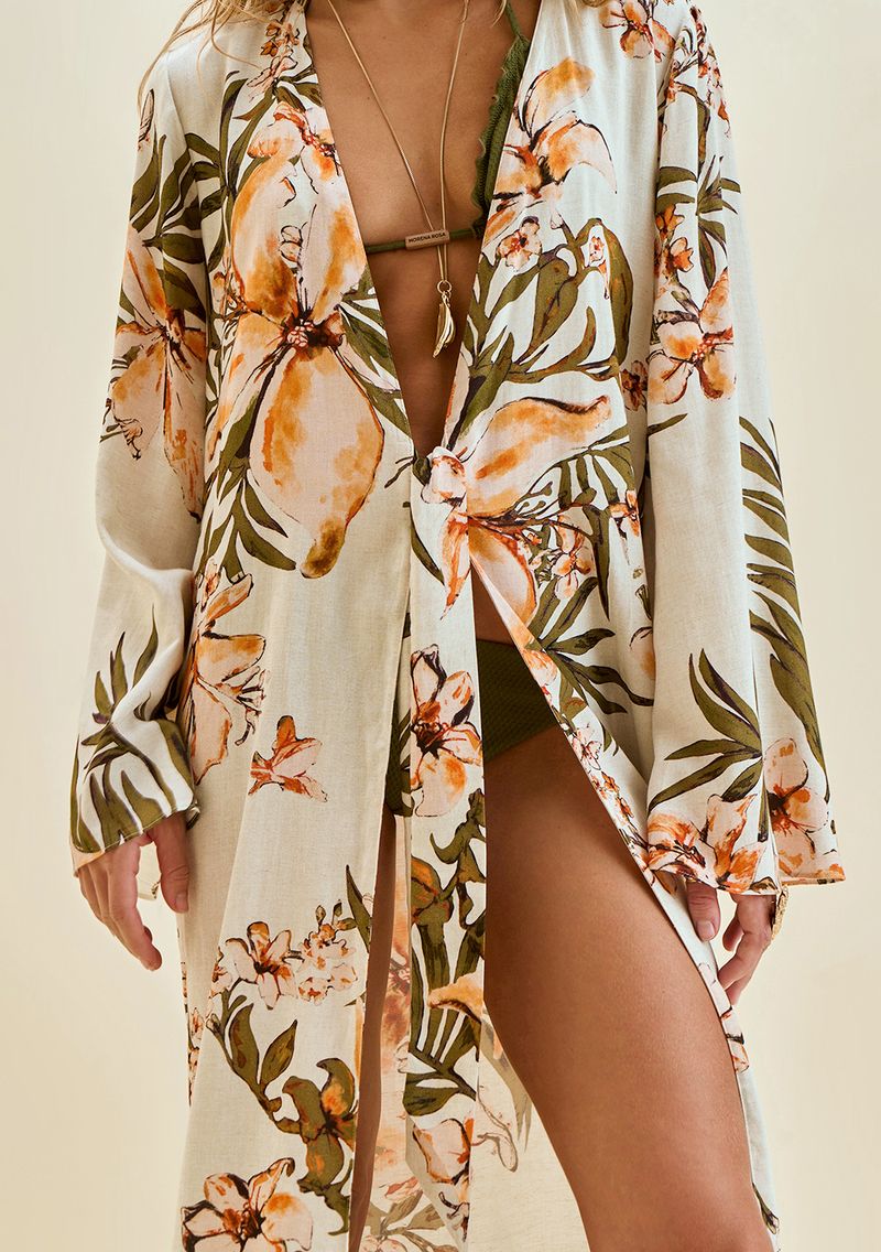 FemininoPraiaSaídasVestidosVestido Morena Rosa Solto Decote V Manga Longa Midi Off White