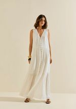 Vestido Morena Rosa Solto Decote V Sem Manga Longo Off White