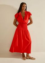 Vestido Morena Rosa Solto Gola Clássica Sem Manga Midi Vermelho