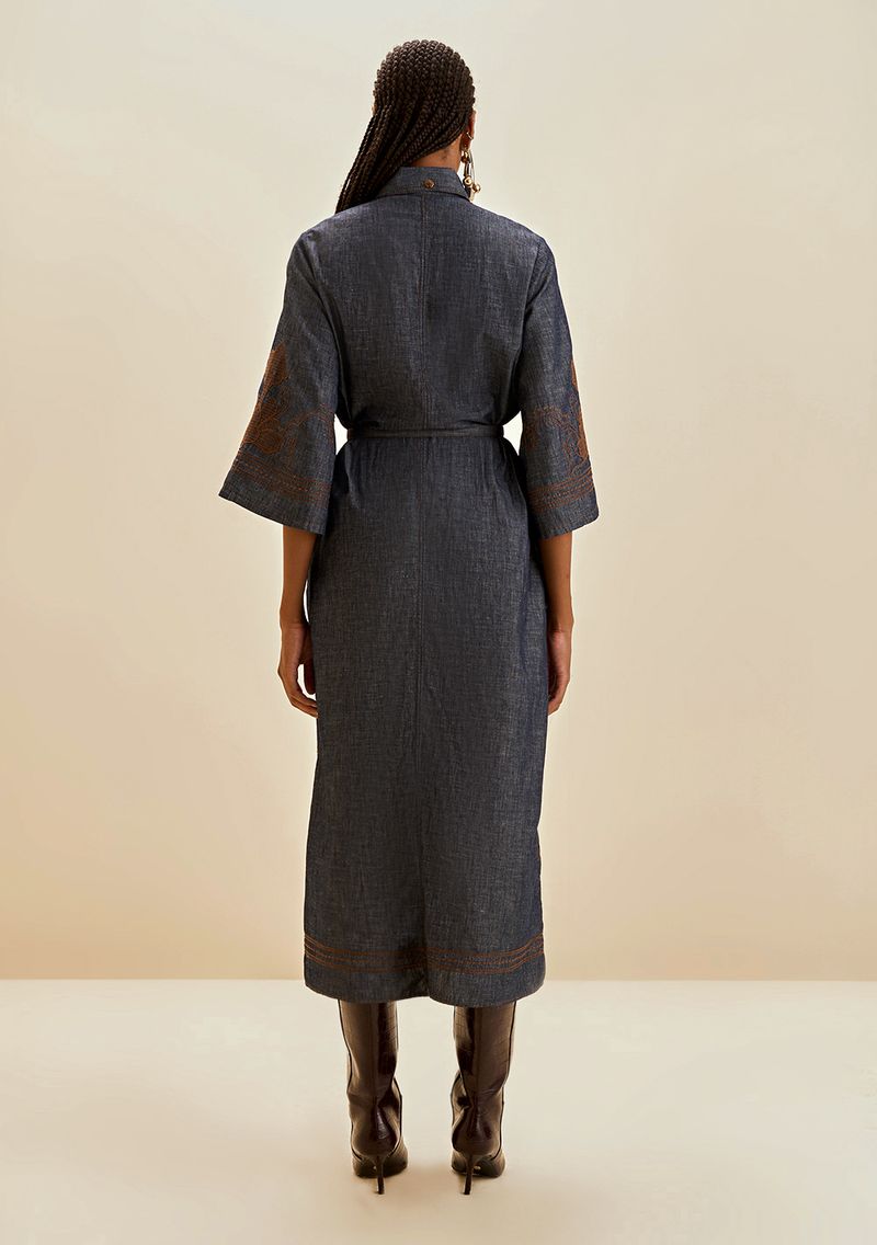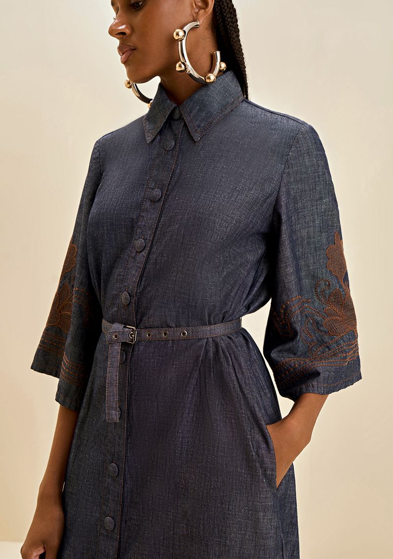 Vestido Morena Rosa Solto Polo Manga Curta Longo Azul