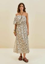 FemininoPraiaSaídasVestidosVestido Morena Rosa Solto Um Ombro Só Manga Curta Midi Bege
