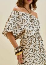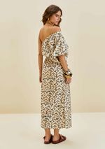 Vestido Morena Rosa Solto Um Ombro Só Manga Curta Midi Bege