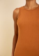 Vestido Zinco Ajustado Decote Careca Sem Manga Curto Marrom