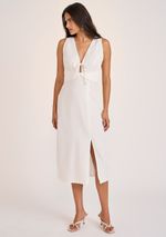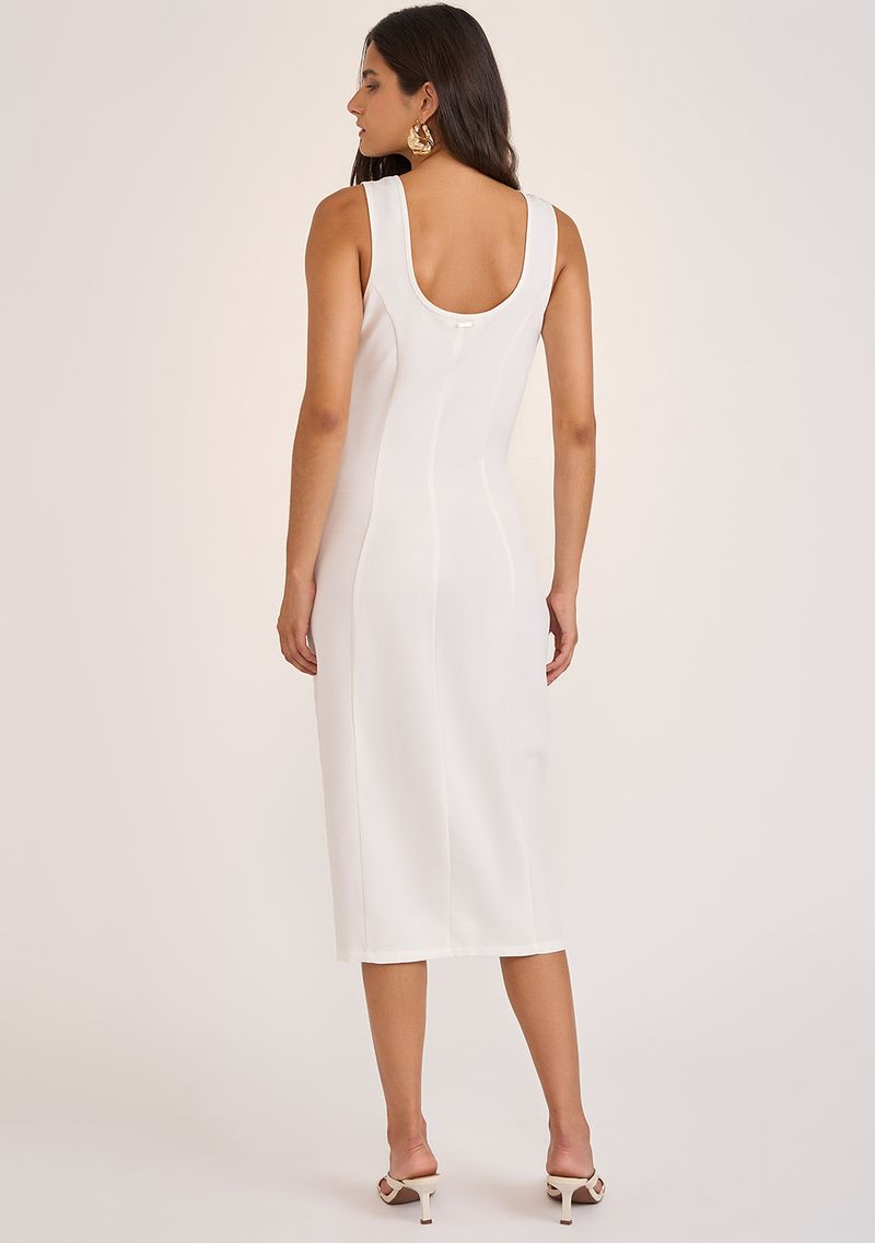 Vestido Zinco Ajustado Decote V Sem Manga Midi Off White