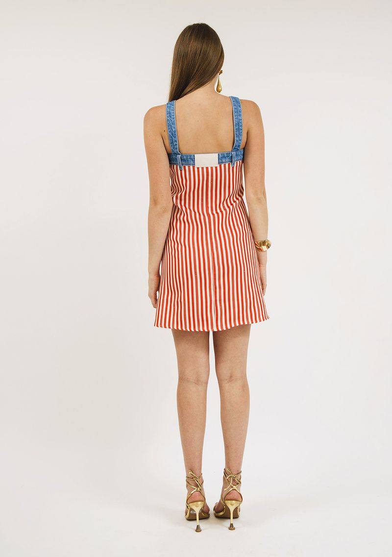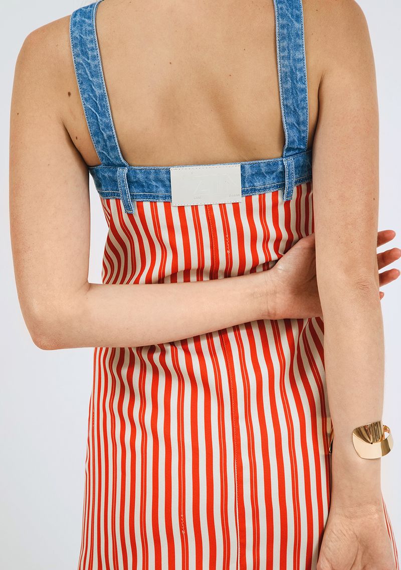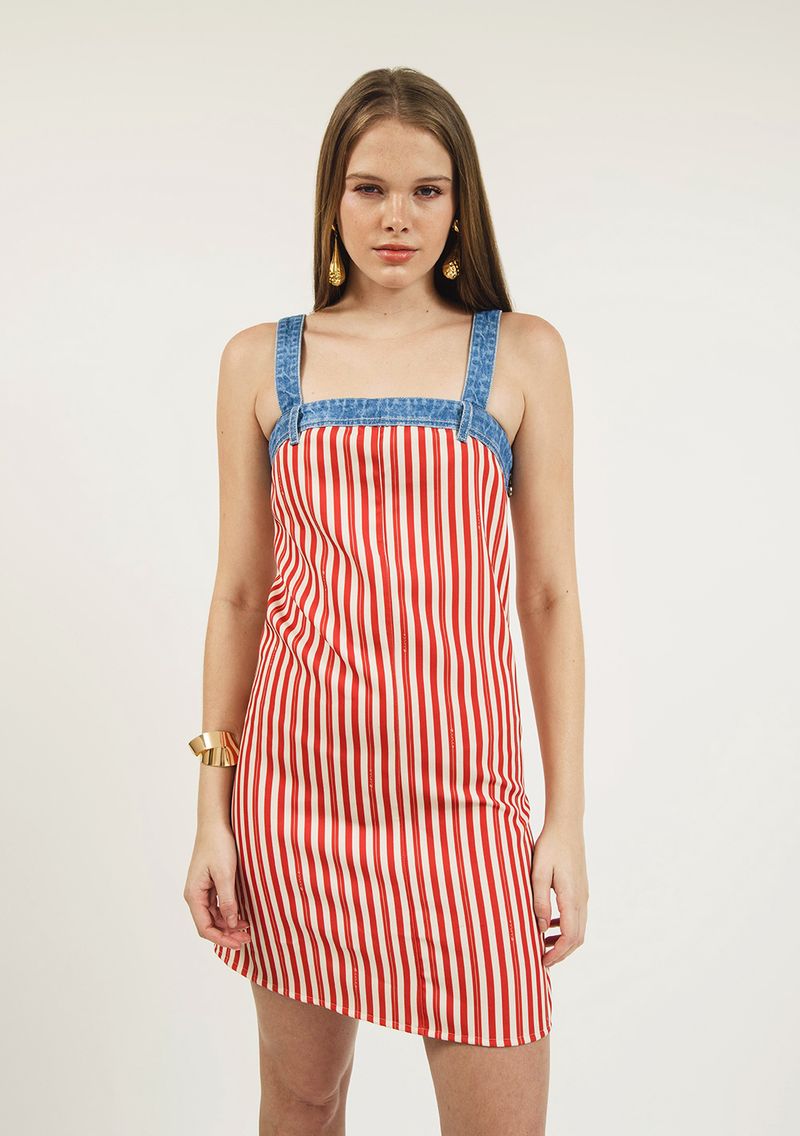 Vestido Zinco Curto Decote Reto Composê De Tecidos Azul