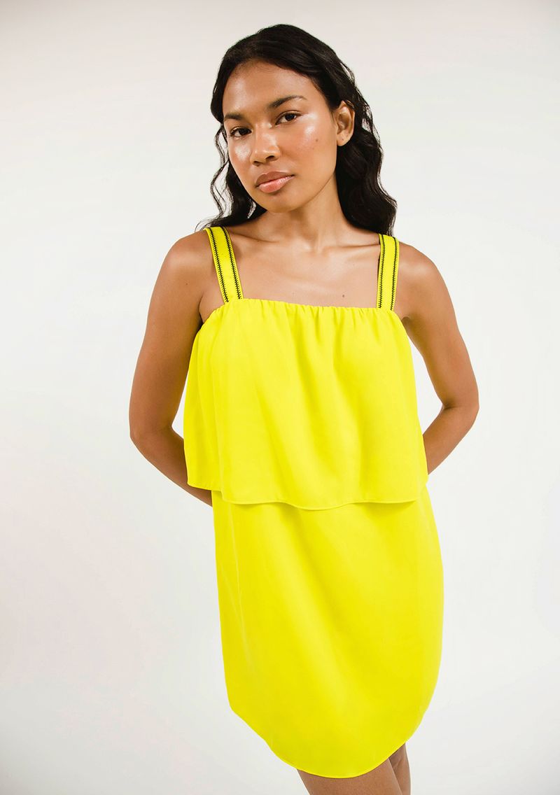 Vestido Zinco Curto Decote Reto Detalhe Alça Verde Claro