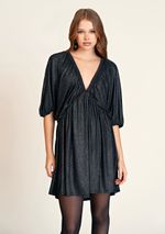 Vestido Zinco Curto Decote V Com Franzido Preto