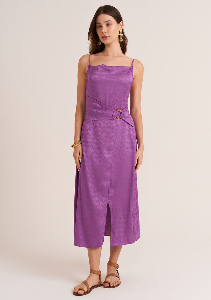 Vestido Zinco Midi Decote Degage Com Fivela Roxo