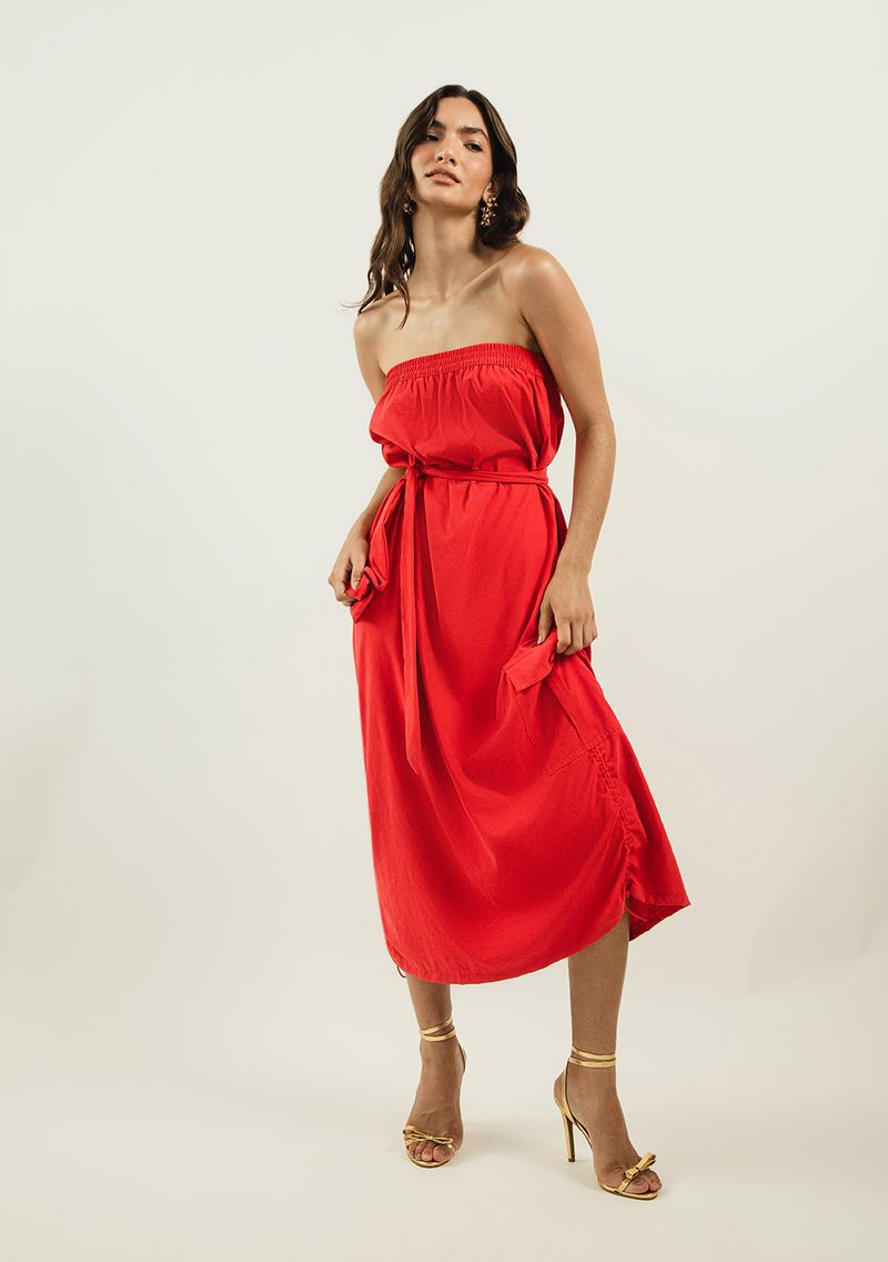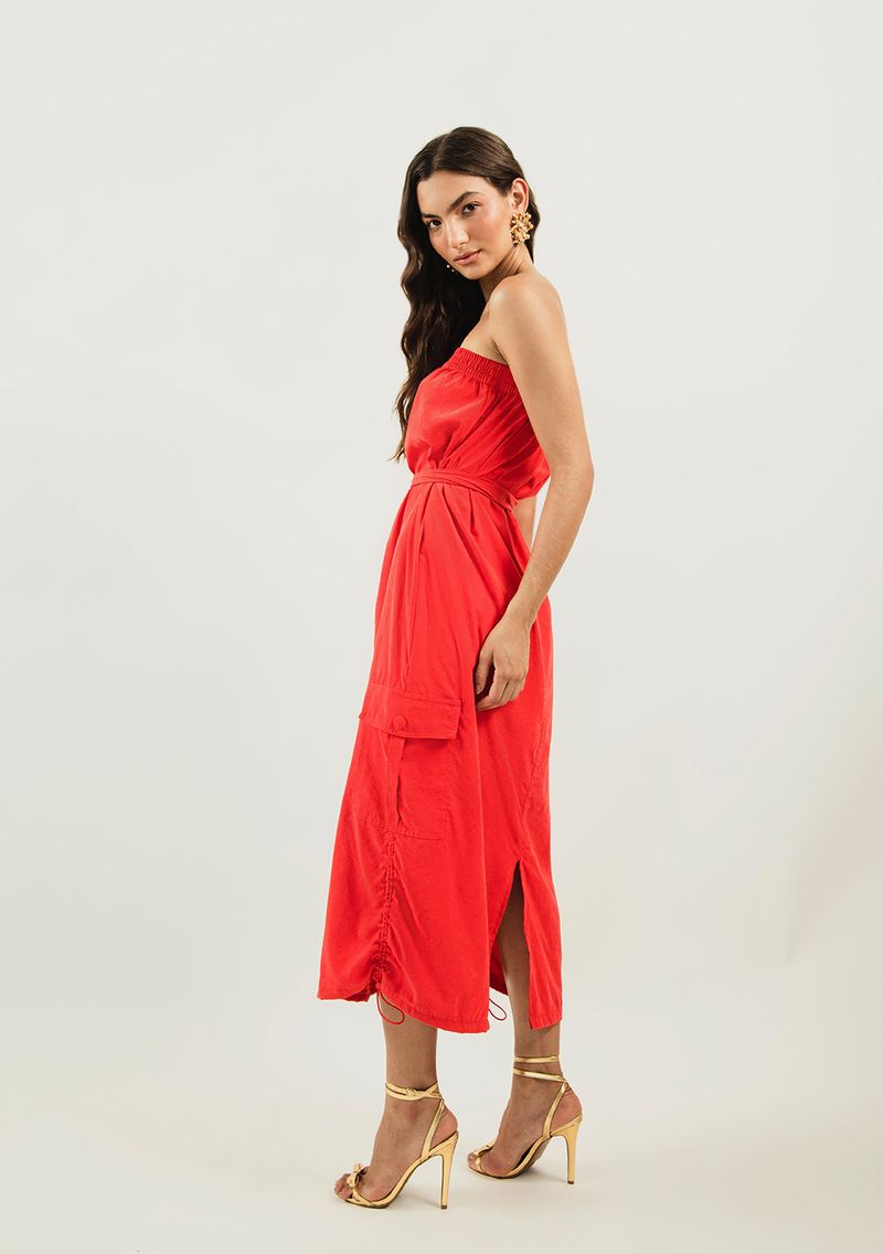 Vestido Zinco Midi Tomara Que Caia Bolso Cargo Vermelho