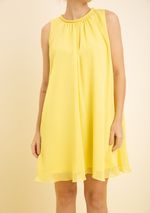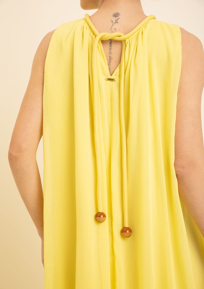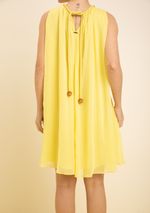 Vestido Zinco Solto Cava Francesa Sem Manga Curto Amarelo