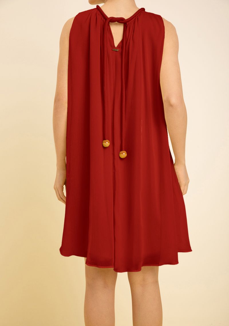 Vestido Zinco Solto Cava Francesa Sem Manga Curto Vermelho