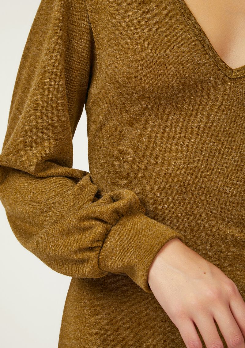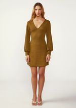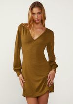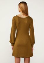 Vestido Zinco Solto Decote Canoa Manga Longa Midi Verde