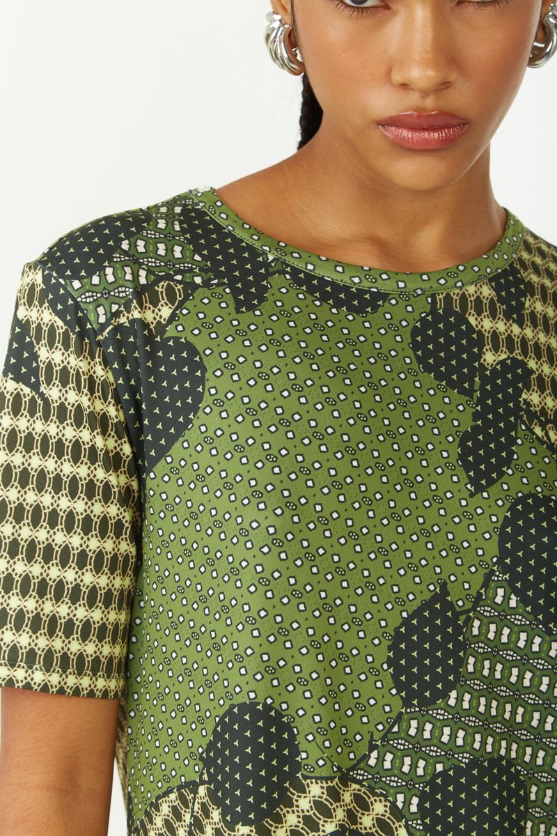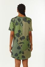 Vestido Zinco Solto Decote Careca Manga Curta Curto Verde