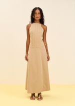 FemininoRoupasVestidosVestido Zinco Solto Decote Reto Com Alça Longo Bege