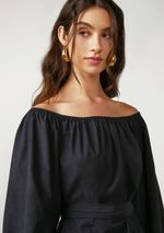 Vestido Zinco Solto Decote Reto Manga Longa Curto Preto