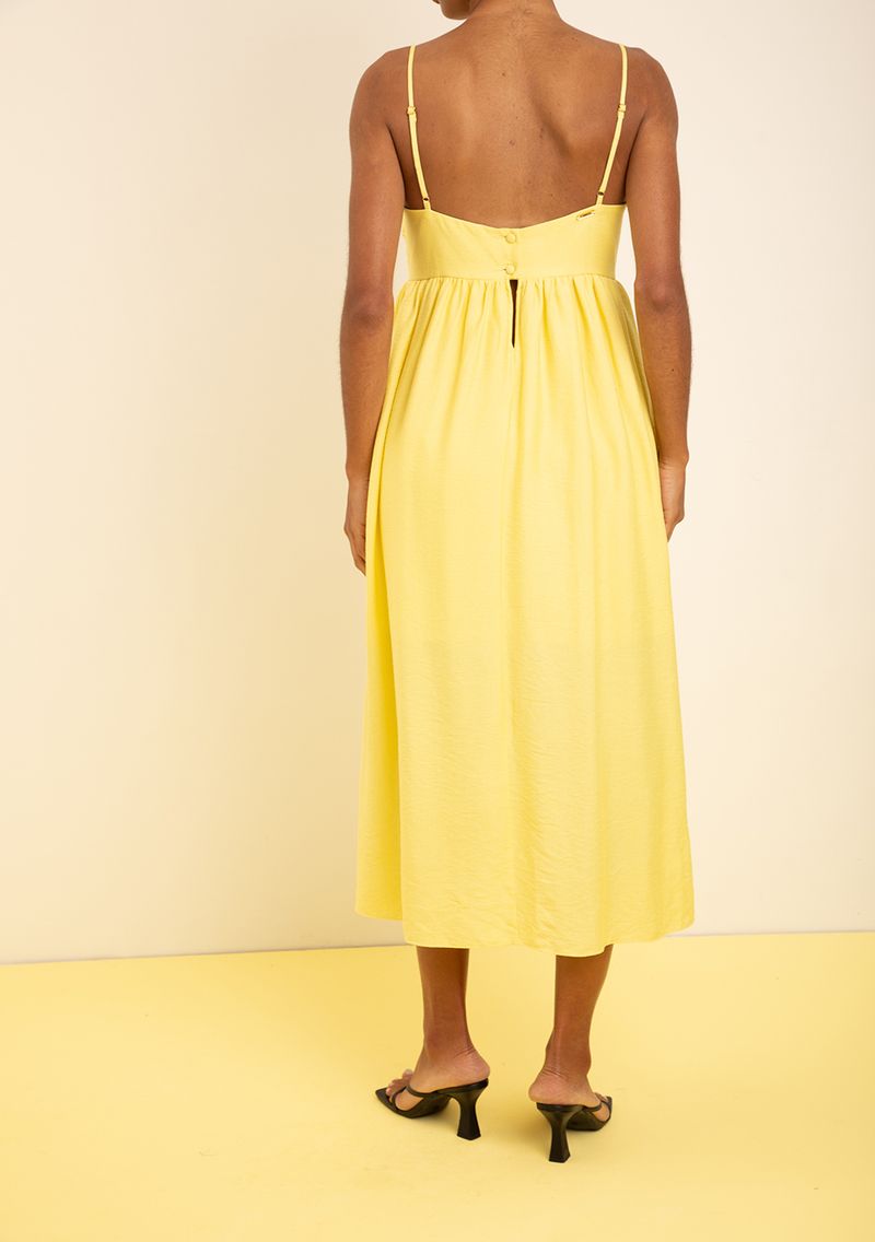 Vestido Zinco Solto Decote V Com Alça Midi Amarelo