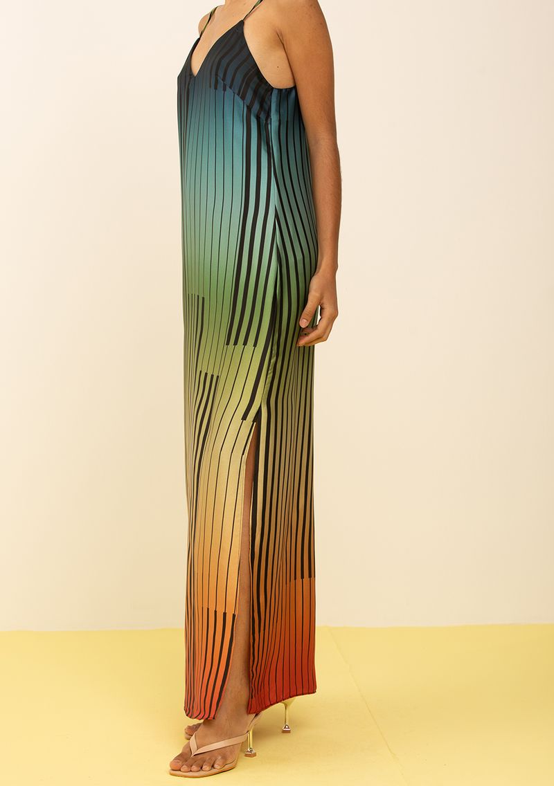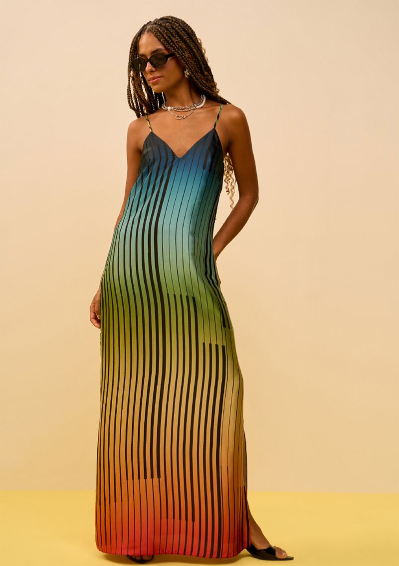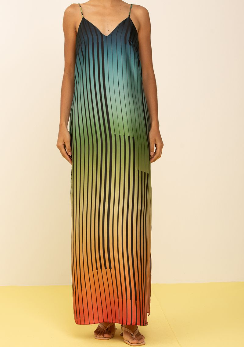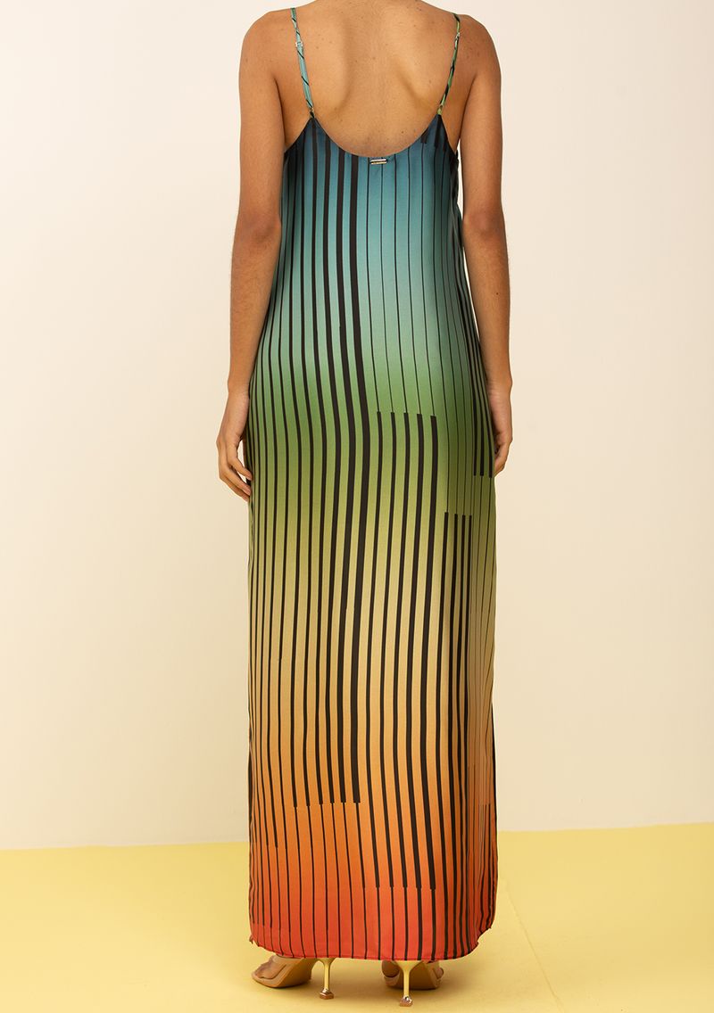 Vestido Zinco Solto Decote V Com Alça Midi Preto