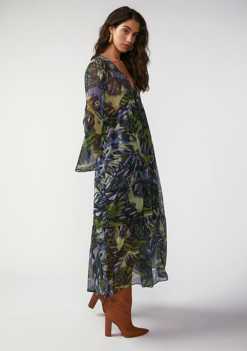 Vestido Zinco Solto Decote V Manga Longa Longo Verde