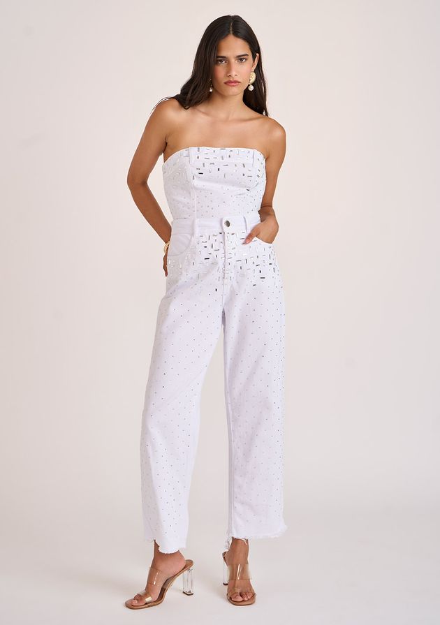 Calça Zinco Reta Cintura Alta Com Fendas Off White