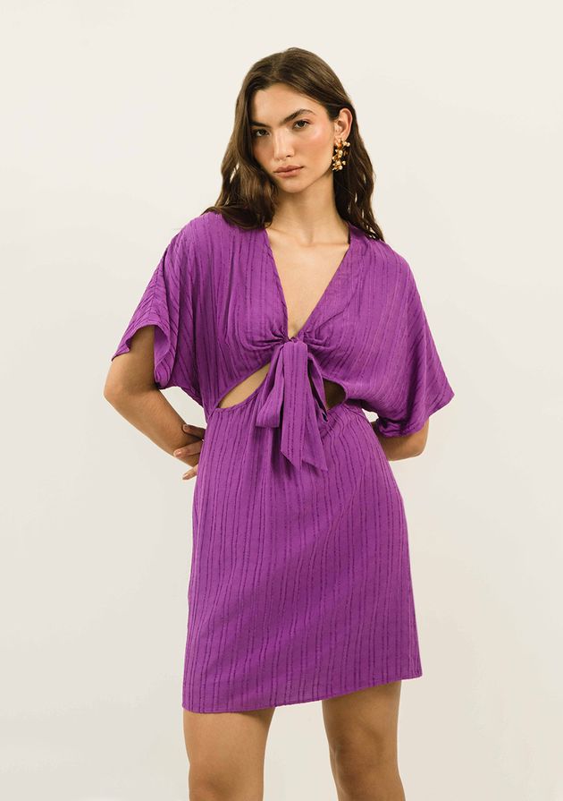 Vestido Zinco Curto Decote V Amarração Frente Roxo