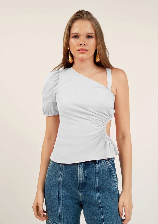 Blusa Zinco Ombro Só Manga Curta Com Franzido Off White