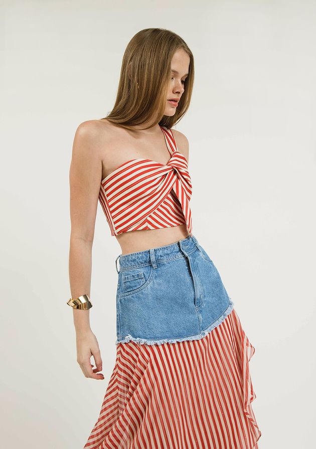 Saia Zinco Midi Assimétrica Composê Tecido Azul