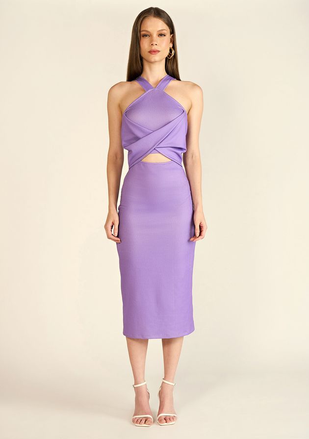 Vestido Zinco Midi Decote V Torção Frente Lilas