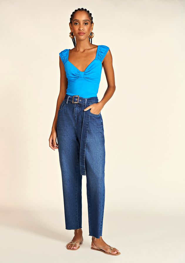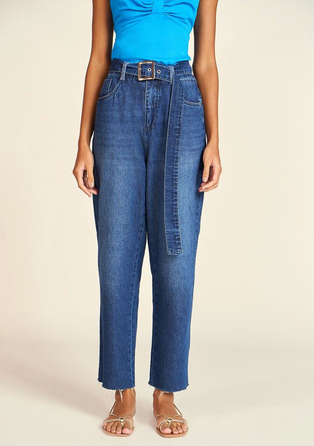 Calça Zinco Mom Cós Alto Com Cinto Jeans
