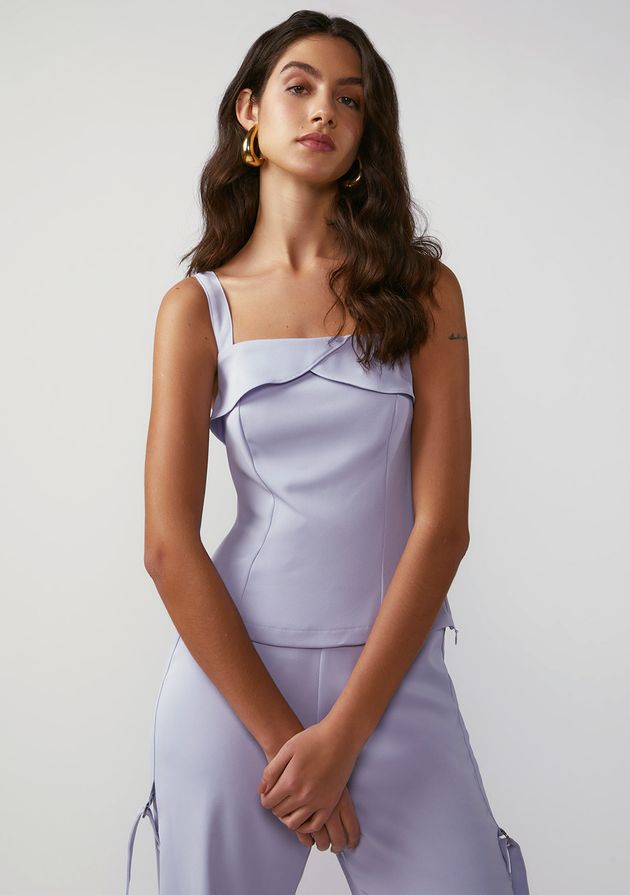 Regata Zinco Solta Decote Quadrado Padrão Lilas